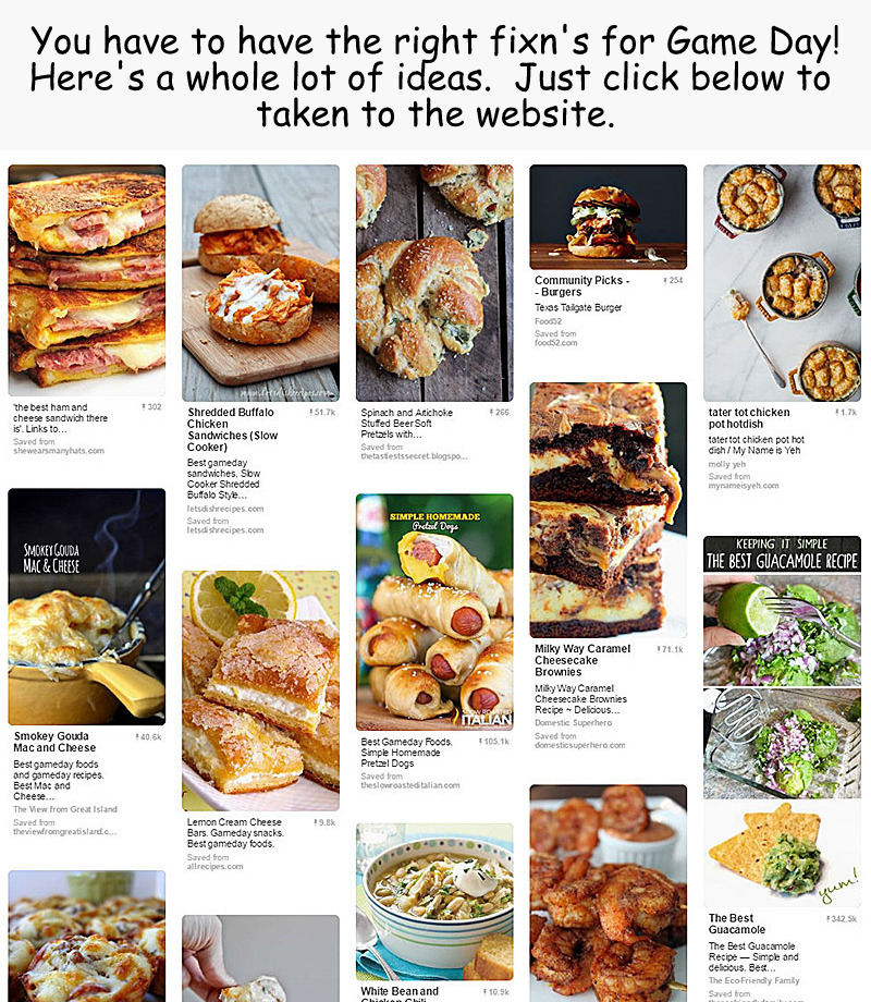 And finally, the ever popular Pinterest supplied popular Football GameDay Foods! Only 500+ to choose from!